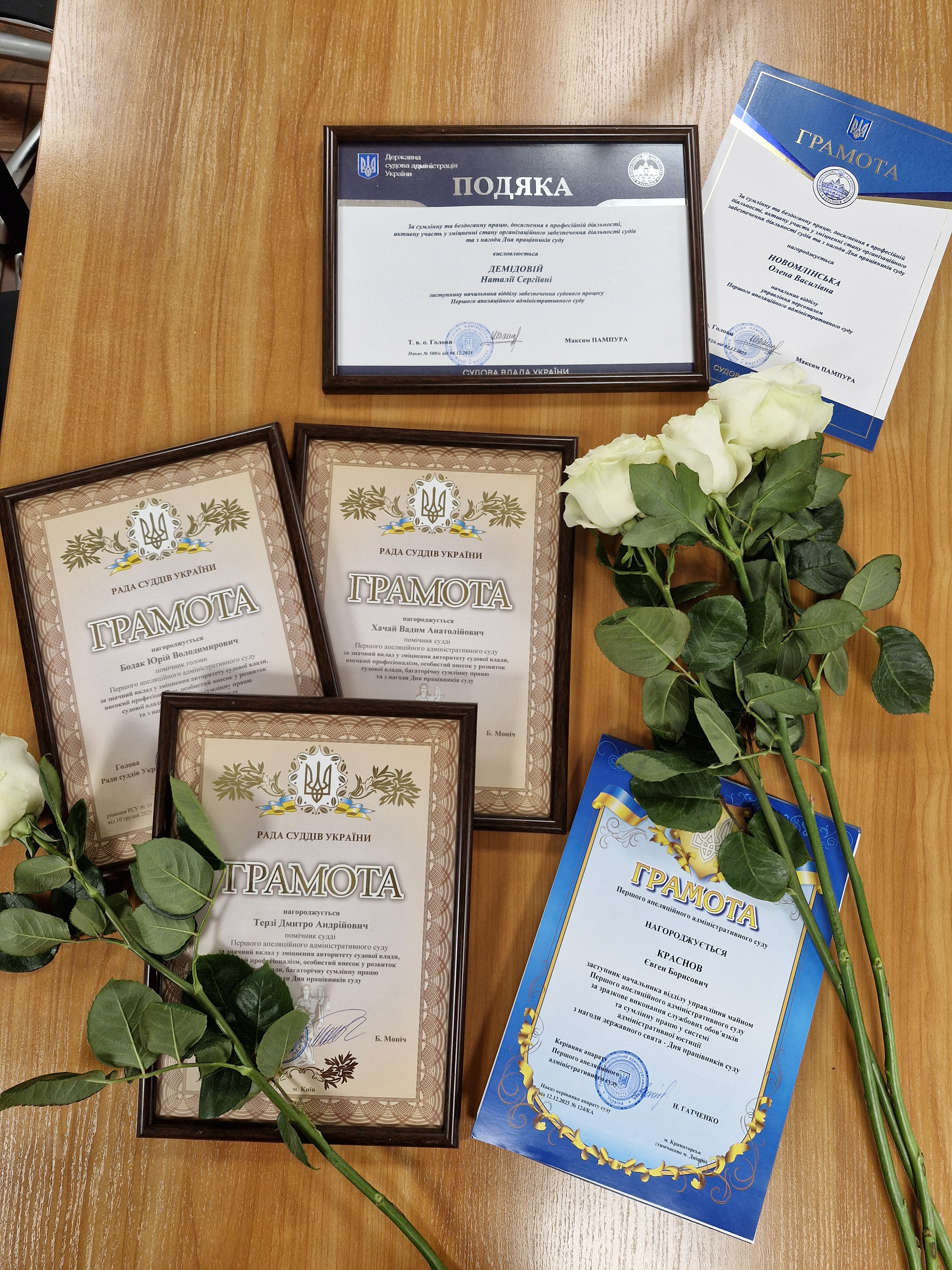 Бодаку Юрію, помічнику голови суду, Терзі Дмитру та Хачаю Вадиму, помічникам суддів вручено Грамоти Ради суддів України.